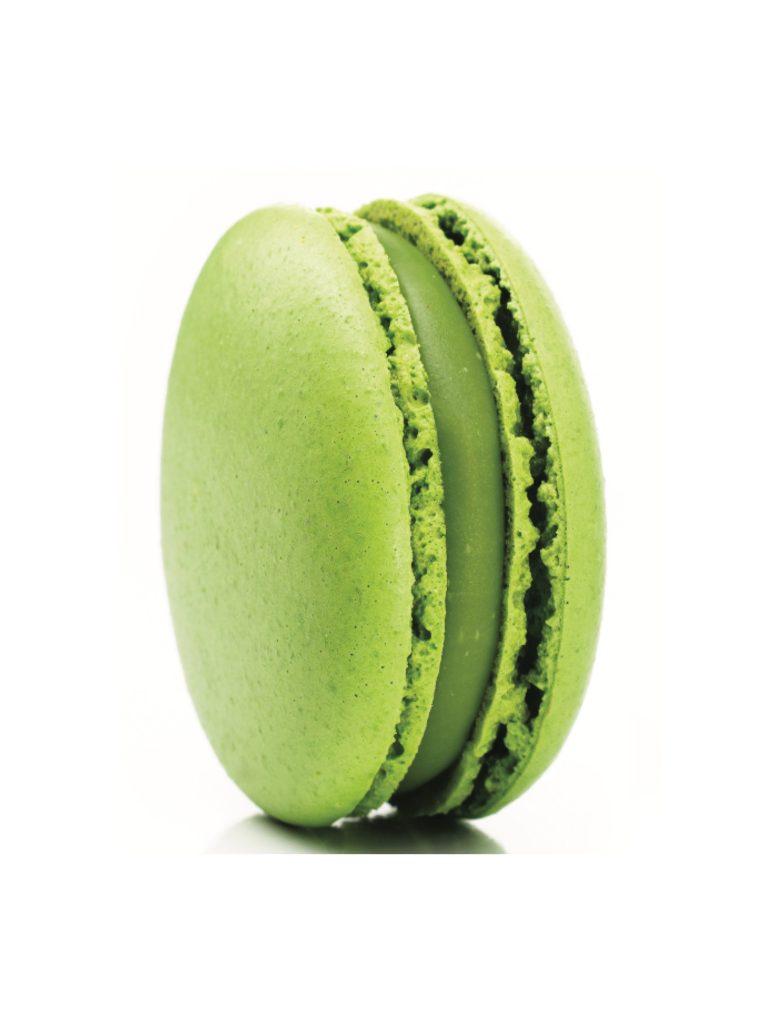 Pistachio Macarons made with two almond and pistachio macaron shells filled with a pistachio ganache.
